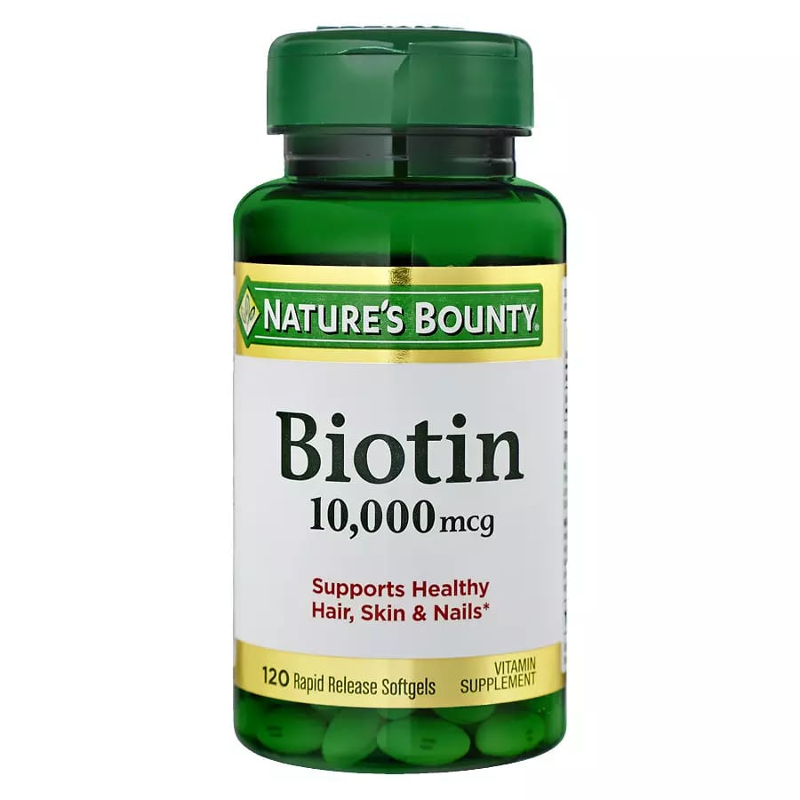 La Biotina 10,000 mcg de Nature’s Bounty (120 unidades) es un suplemento de alta potencia diseñado principalmente para fortalecer el cabello, la piel y las uñas, además de apoyar el metabolismo energético.